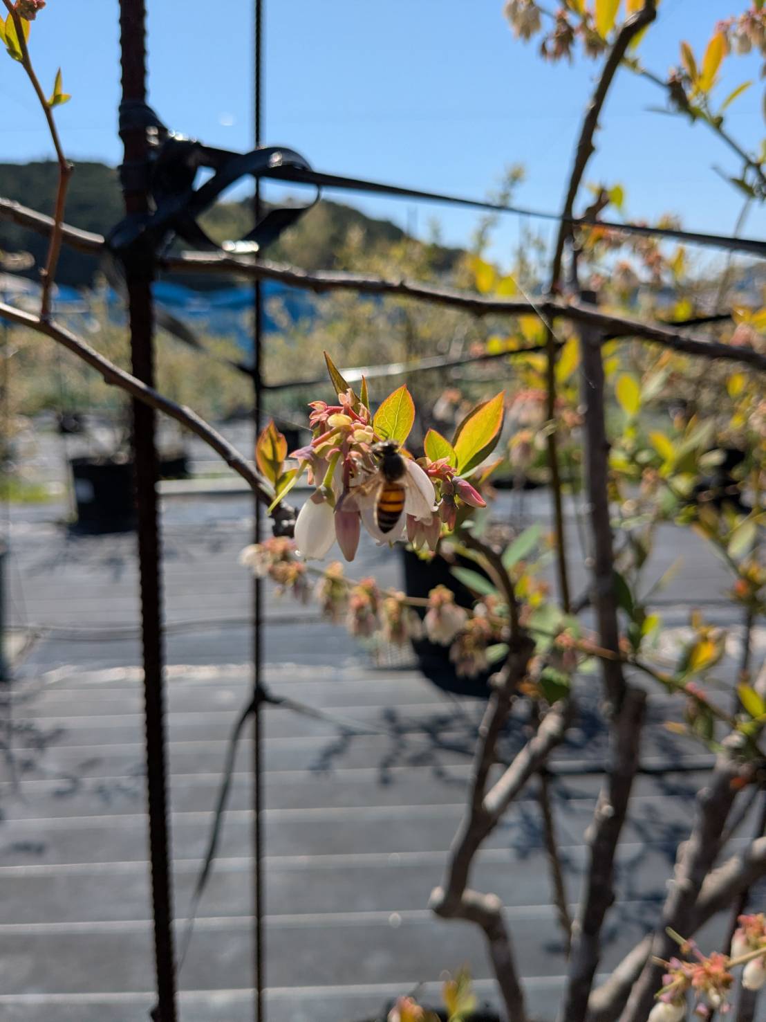 ブルーベリーは現在、蜂をとばして受粉の最中